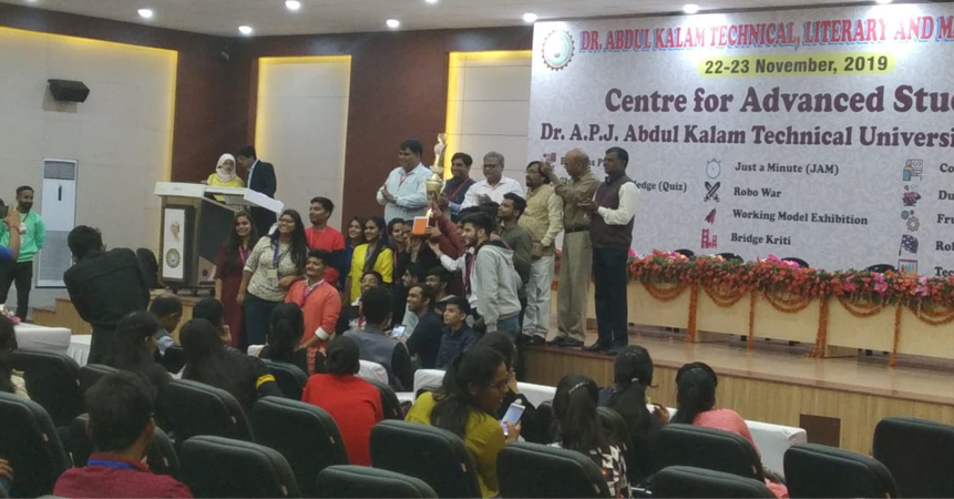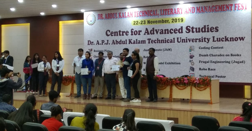 KIET Literary & Management team have performed enormously in AKTU state level Technical, LITERARY & MANAGEMENT FEST-2019: on 22nd& 23rd November 2019 at Centre for advanced studies, AKTU Lucknow for all the engineering Institute of different Zone In this event our 07 students participated with full enthusiasm and achieve 1 Gold& 1 bronze in different events.