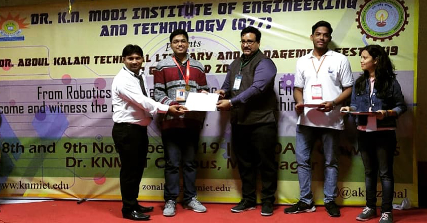I am delighted to share with you that KIET Literary & Management team have performed enormously in AKTU ZONAL Technical, LITERARY & MANAGEMENT FEST-2019: organized at zonal center Dr. K. N Modi Institute of Engineering & Technology on 8th & 13th Nov 2019, for all the engineering Institute of Ghaziabad Zone in which approximately 500 students have participated in 13 different literary & Management events. In this event our 30 students participated with full enthusiasm and achieve 3 Gold in different events.