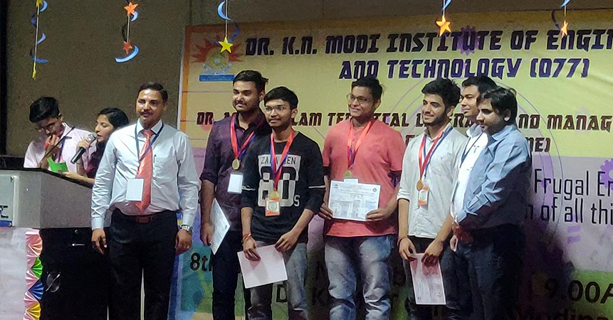 Saurabh Kumar Maurya (3rd year-ME), Harshit Rastogi (3rd year-ME), Aditya Shukla (2nd year-ME), Akarshi Verma (2nd year-EN), Bilal Khan (2nd year-ME), Jagriti Singh (2nd year-ECE), NishantTyagi (2nd year-ME), Parth Sarthi (2nd year-ME) & Pundir Shreya Sujay(2nd year-ME), Students of KIET Design CLUB secured Second position with cash prizeof Rs 1500 out of 20+ teams from prestigious colleges, in the event ASME EFx at Punjab Engineering College, Chandigarh from October 4, 2019 to October 5, 2019.