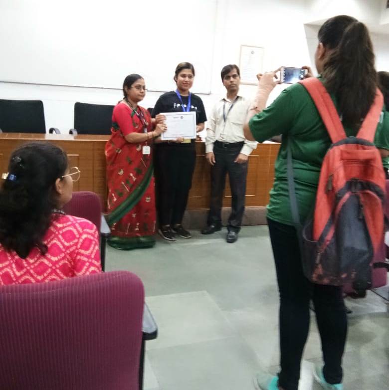 A team 'tech interstellar' of three students (Ronak Jain 2nd year-IT, Naveen kumar Tiwari 2nd year-IT & Yash Chaturvedi 2nd year-ECE) receive first position & prize Rs 6500/- -" Data hackathon " dated - 12th October 2019 organized by IGDTUW college Delhi.