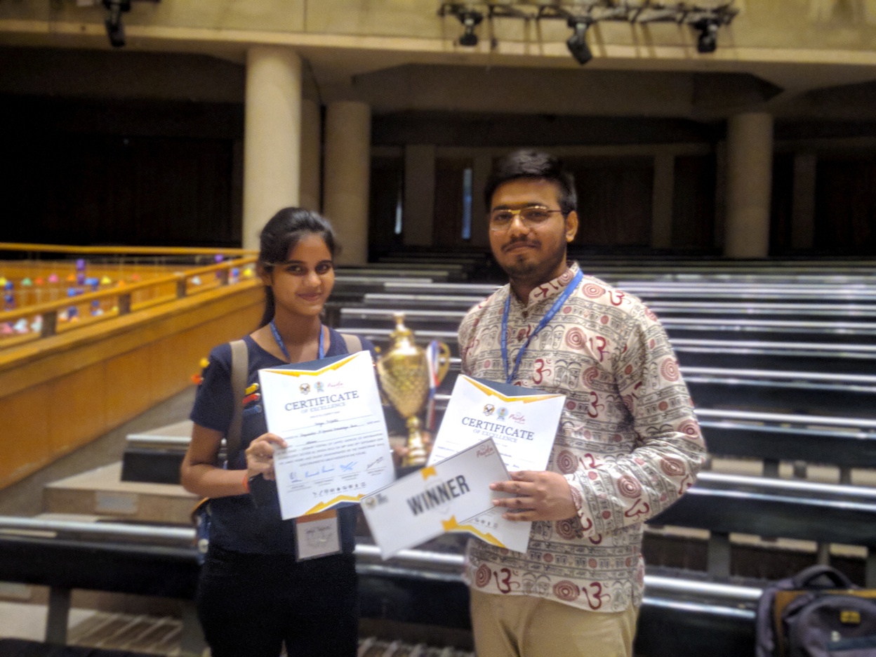 " Team Spark” (Saumya Jaiswal – 2nd year –IT & Udit Mishra –CSE 4th Year) received 1st position in the literary event "AD-MAD Show” in the fest of ABESIT named Festin-o-beats, 2k19 held on 3rd and 4th October 2019.