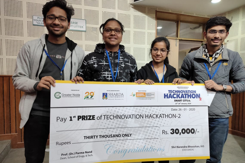 TECHNOVATION HACKATHON 2 presented by Greater Noida Industrial Development Authority (GNIDA) in collaboration with Sharda University on the occasion of 29th Foundation Day of GNIDA 24-hour lasting Hackathon Conducted at Sharda University on January 25-26 2020.