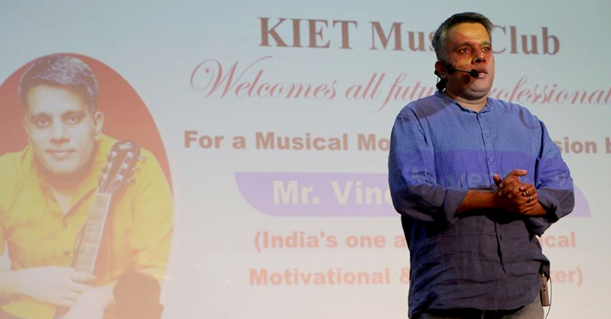 KIET Music Club successfully organized a "MUSICAL MOTIVATIONAL SESSION" by India's one and only Musical motivational and TEDx speaker Mr. Vineet Tandon on agenda "CORPORATE EXPECTATIONS FROM GRADUATES" on 8th November 2019. The session was a blend of Enjoyment and lots of motivational talks along with seasoning of poetry and songs.