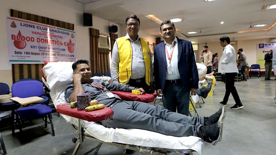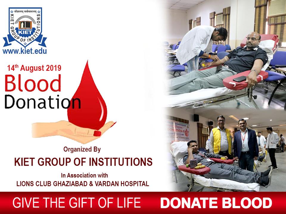 KIET Group of Institutions Organized a blood donation camp in collaboration with "The Rotary Blood Bank” on 14th August 2019. Event was started with blood donation by Director Dr. (Col) A Garg, Joint Director Dr. Manoj Goel & Dean (SW)- Dr. Ashish Karnwal. In this camp Overwhelming number of faculties and Volunteers of different departments has participated with vivacity. The main aim of the event was to create awareness among students about the donation of blood and how it can help other person in need.
