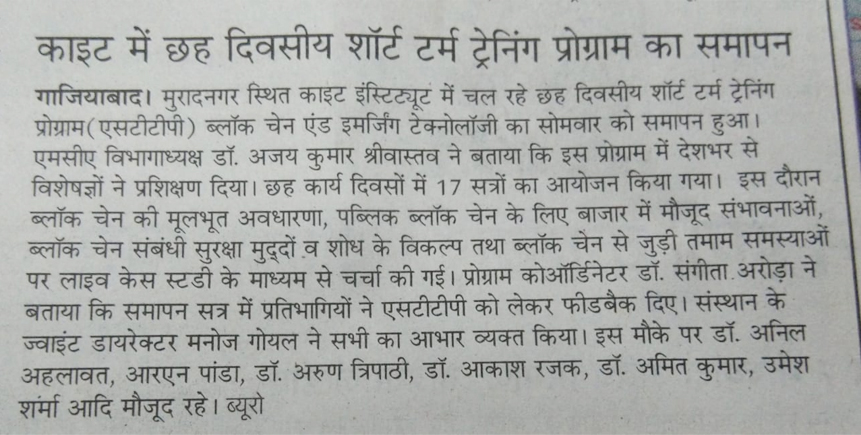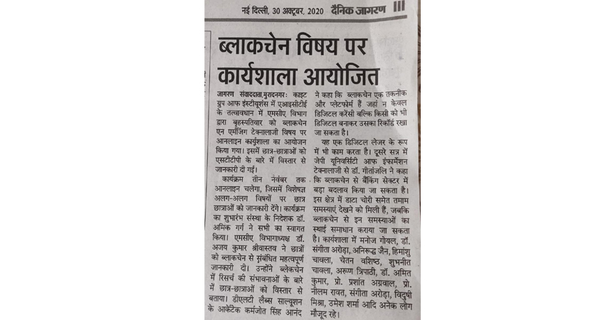 MCA has Organized 06 Days AICTE Sponsored STTP on "BlockChain:An Emerging Technology" from 29-10-20