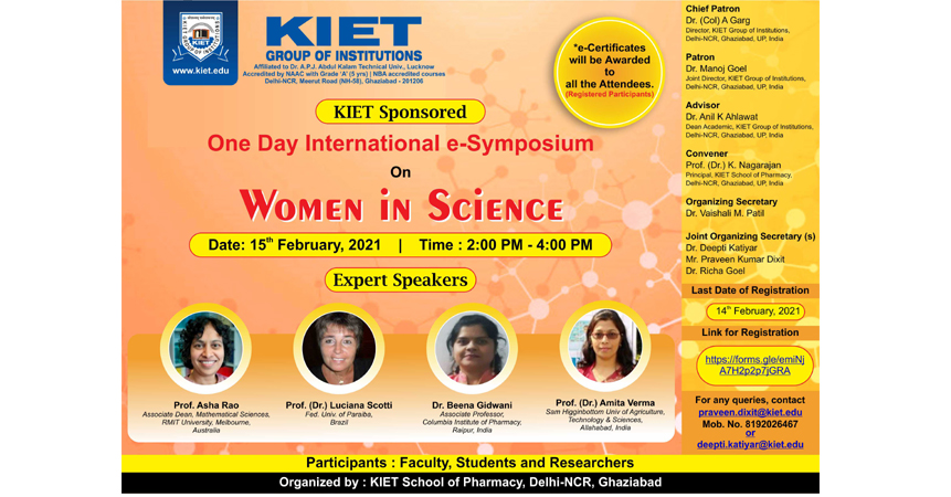 KSOP Organized One Day International e-Symposium on Women in Science on 15 Feb 2021