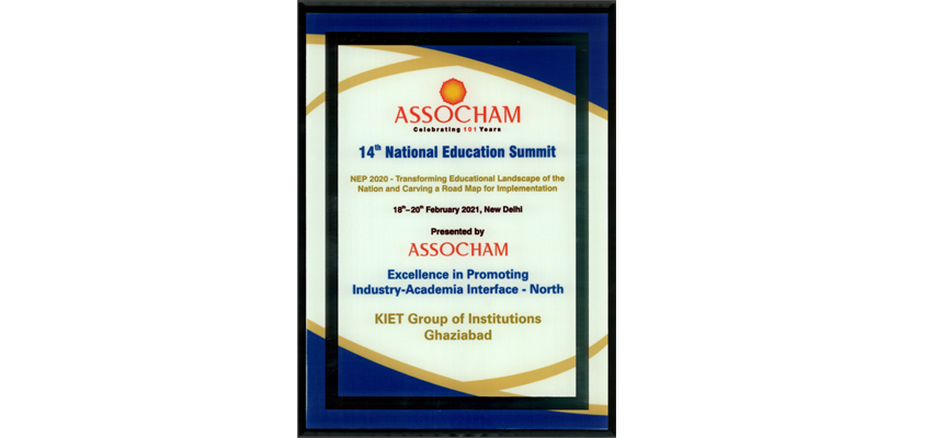 ASSOCHAM has awarded "Excellence in Promoting Industry-Academic Interface – North” on 20 Feb 2021