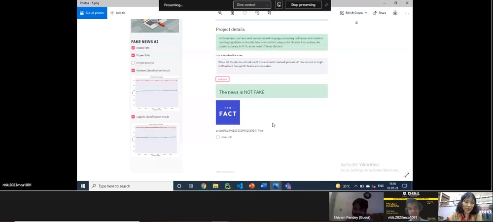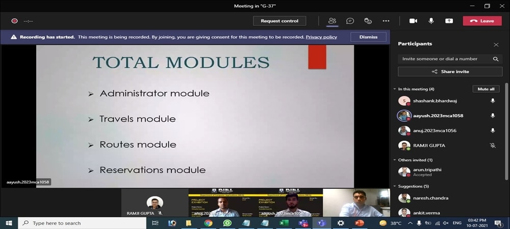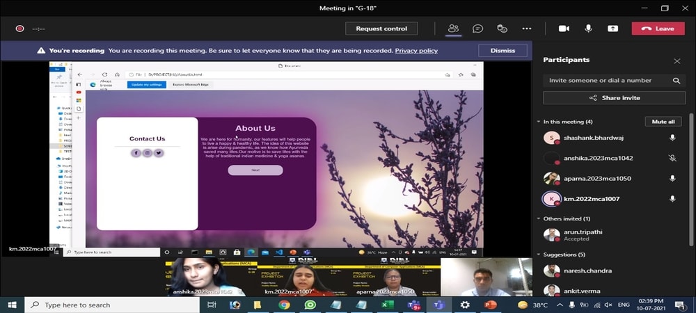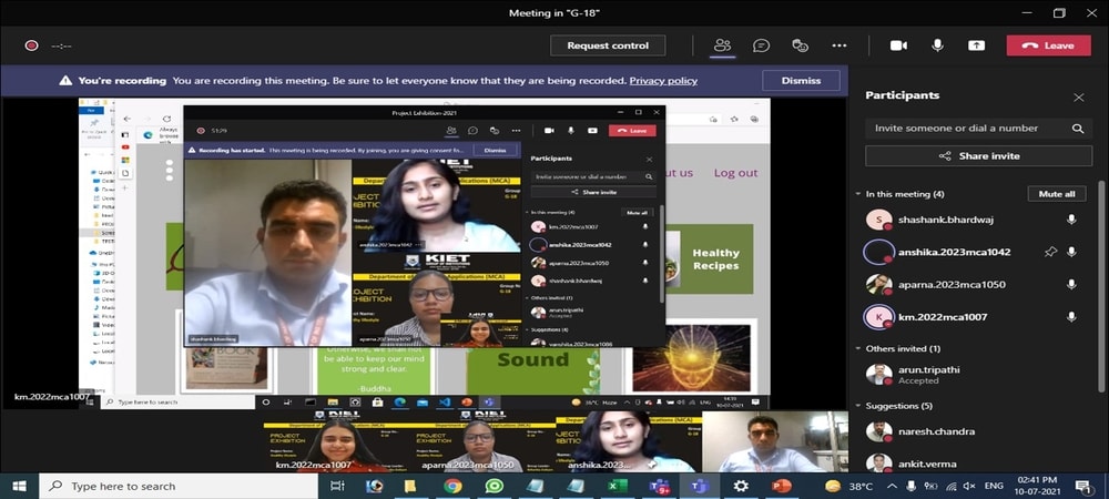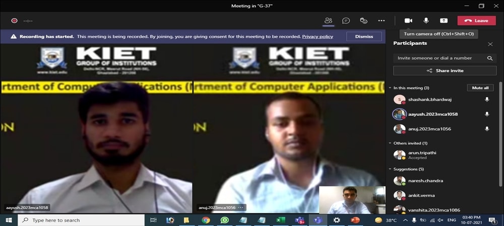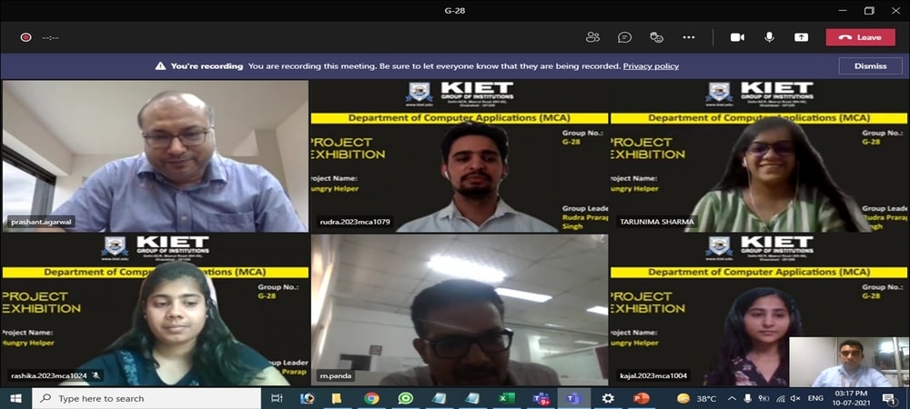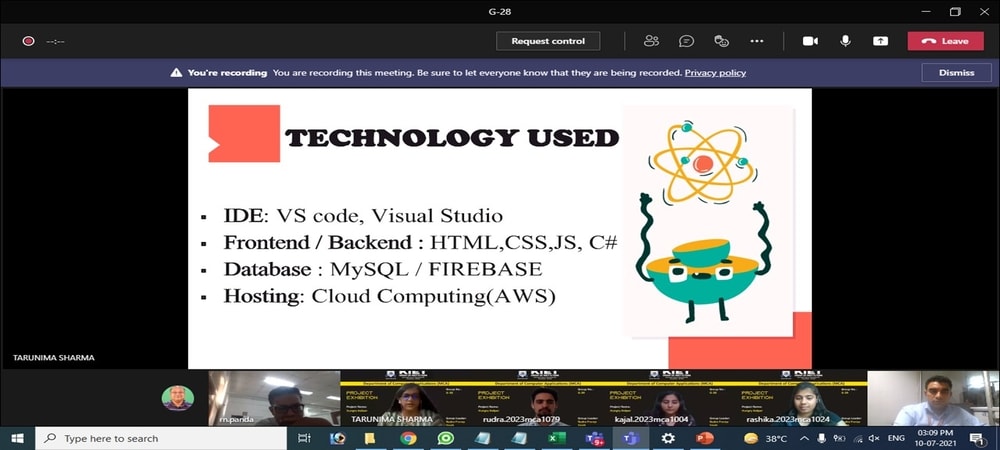 Project Exhibition 2K21 Organized by MCA Department on 10 July 2021