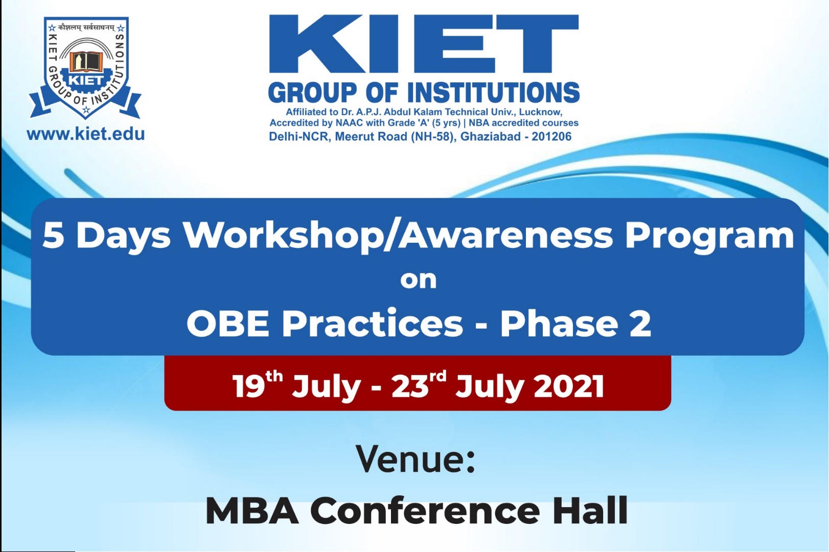 KIET Has Organized 5 Days Workshop/Awareness Program on OBE Practices (Phase-2) On 19 To 23 Jul 2021