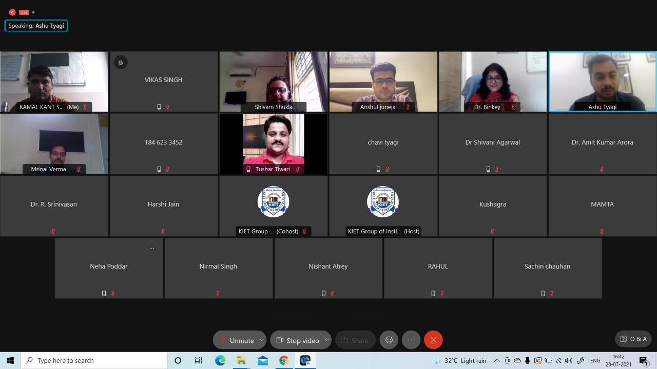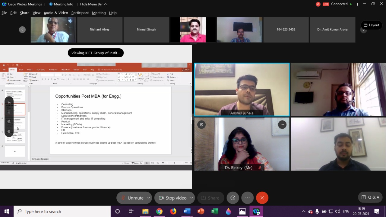 Alumni Panel Discussion On Relevance of MBA for Technical Professionals Was Organized On 20-07-2021
