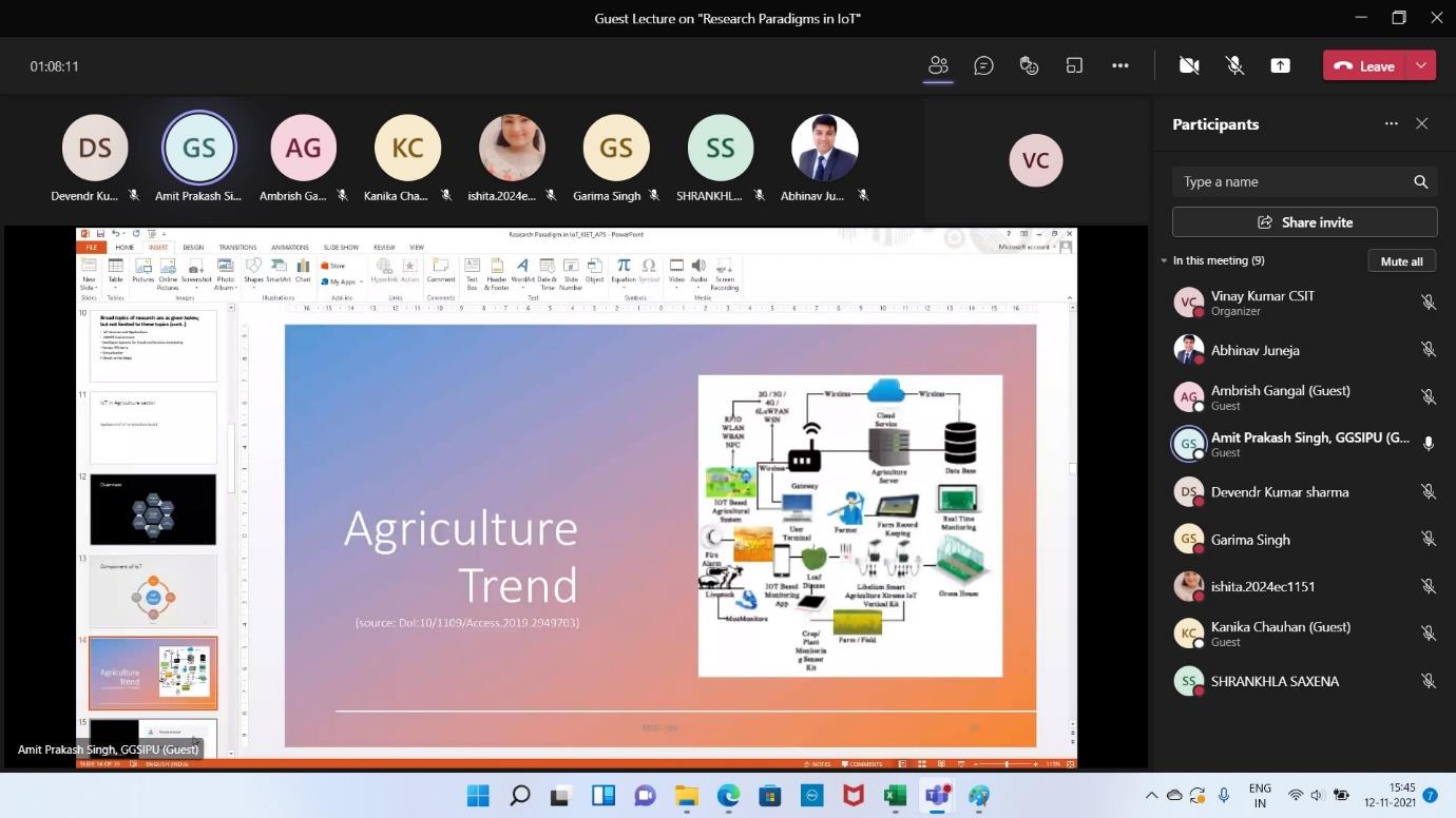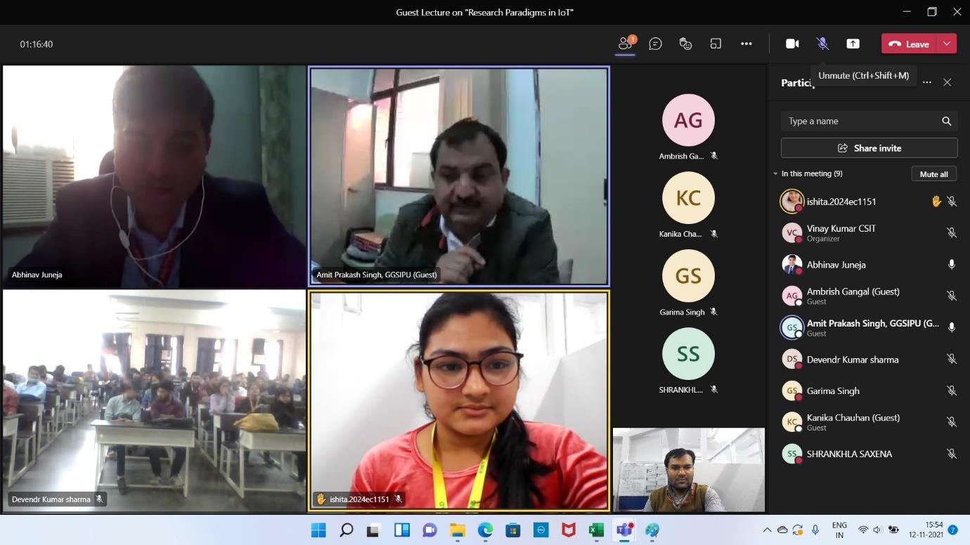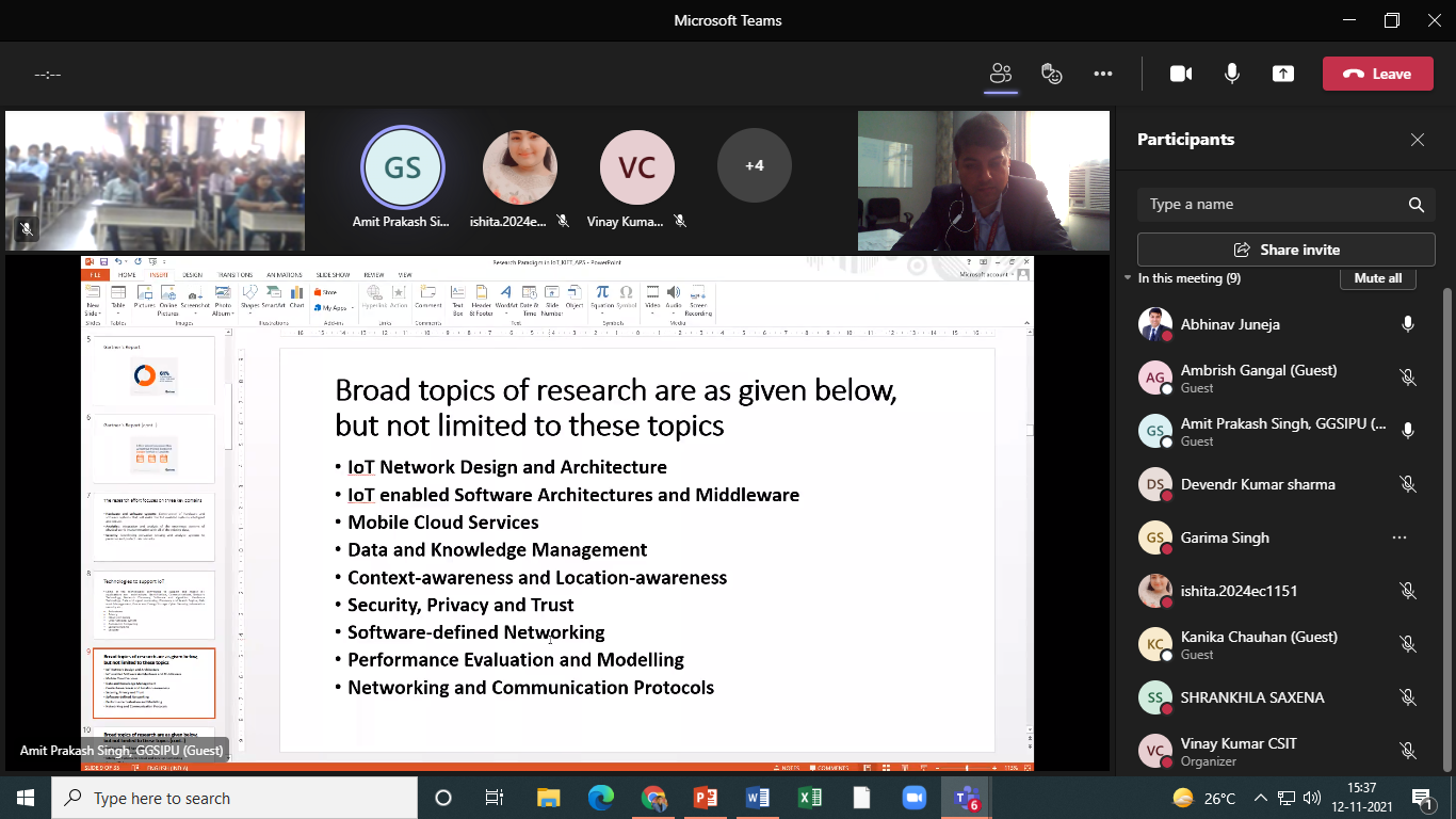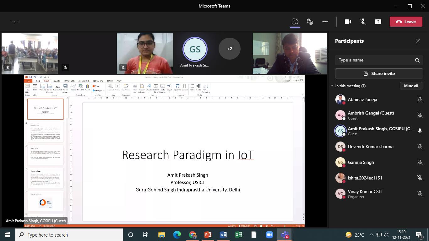 CSIT Department Organized a Guest Lecture on “Research Paradigm in IoT” on 12 Nov 2021