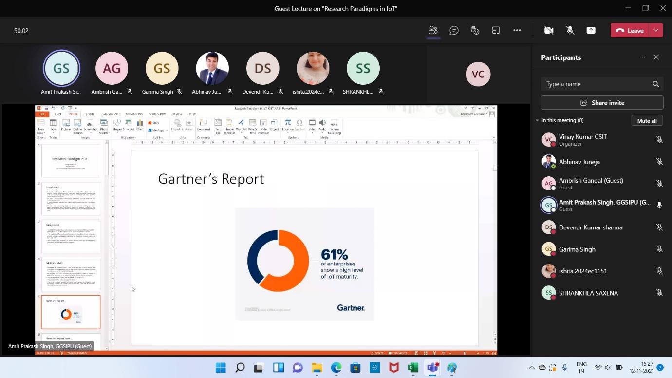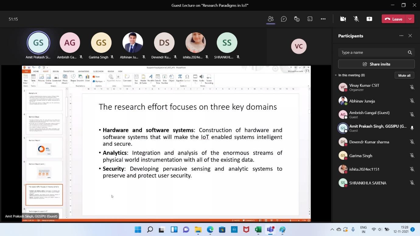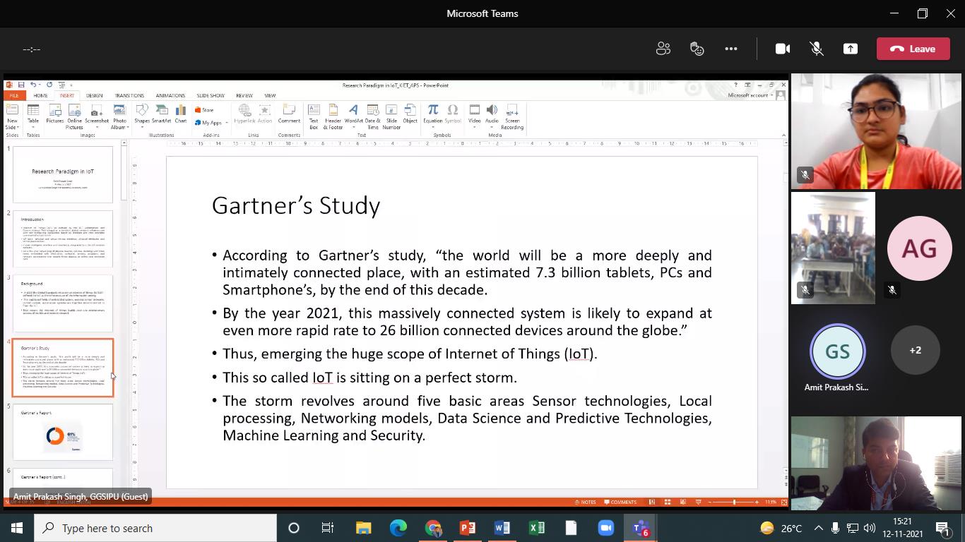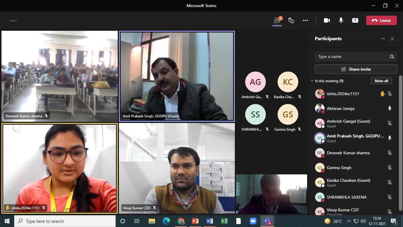 CSIT Department Organized a Guest Lecture on “Research Paradigm in IoT” on 12 Nov 2021