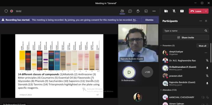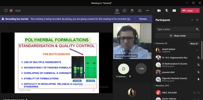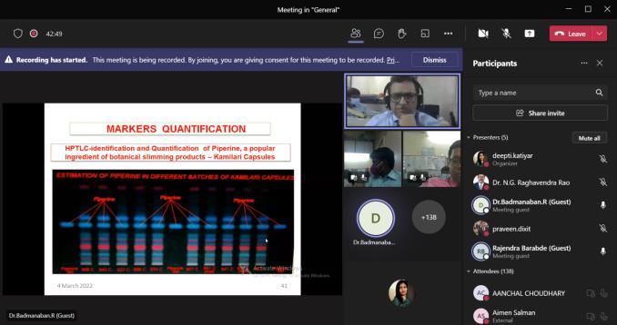 Webinar on "HPTLC APPLICATIONS IN POLYHERBAL FORMULATION STANDARDIZATION USING MARKERS" by KSOP on 5th March 2022