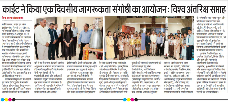 "A Space Exhibition”, Sponsored by Indian Space Industry Exhibitors (ISIE), Ghaziabad and Regional Remote Sensing Centre - North, National Remote Sensing Centre, ISRO for faculty and students on 7th Oct 2022