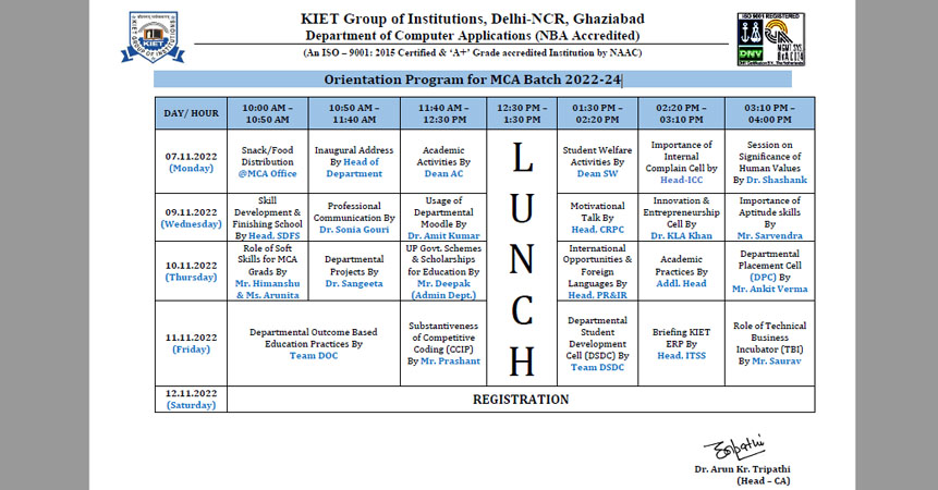 Department of Computer Applications Organized Orientation Program for MCA Batch 2022-24 From 07 to 11 Nov 2022