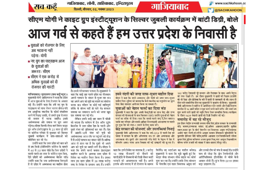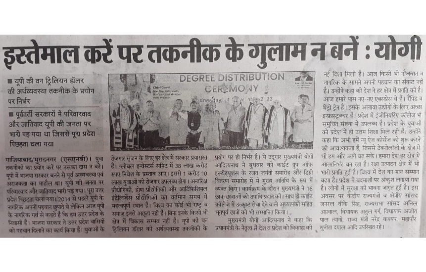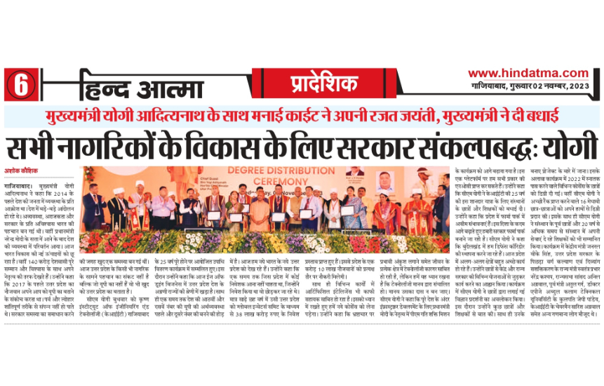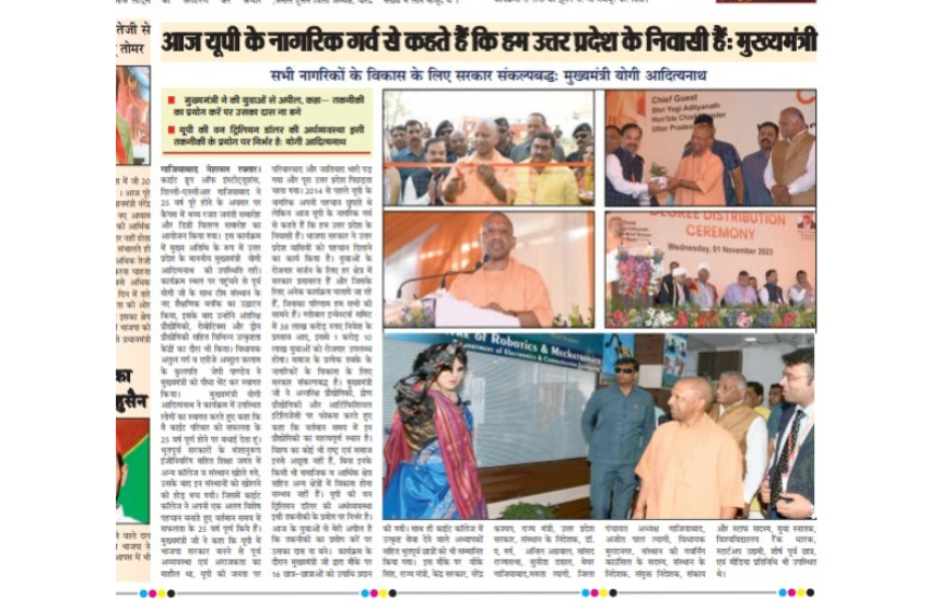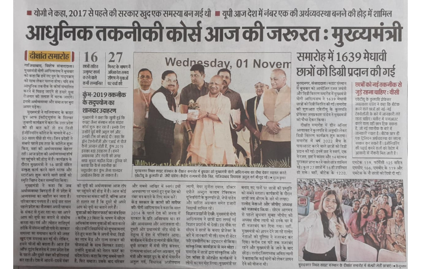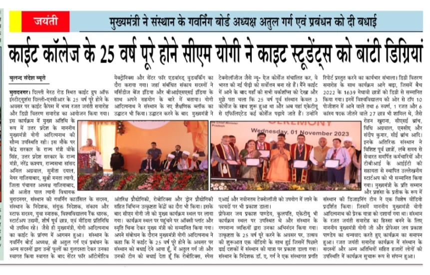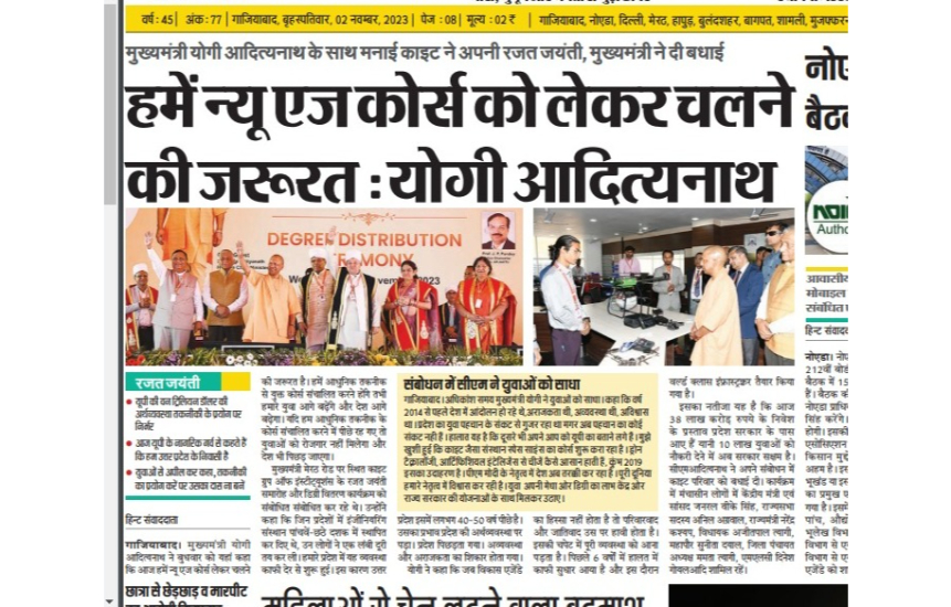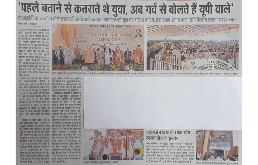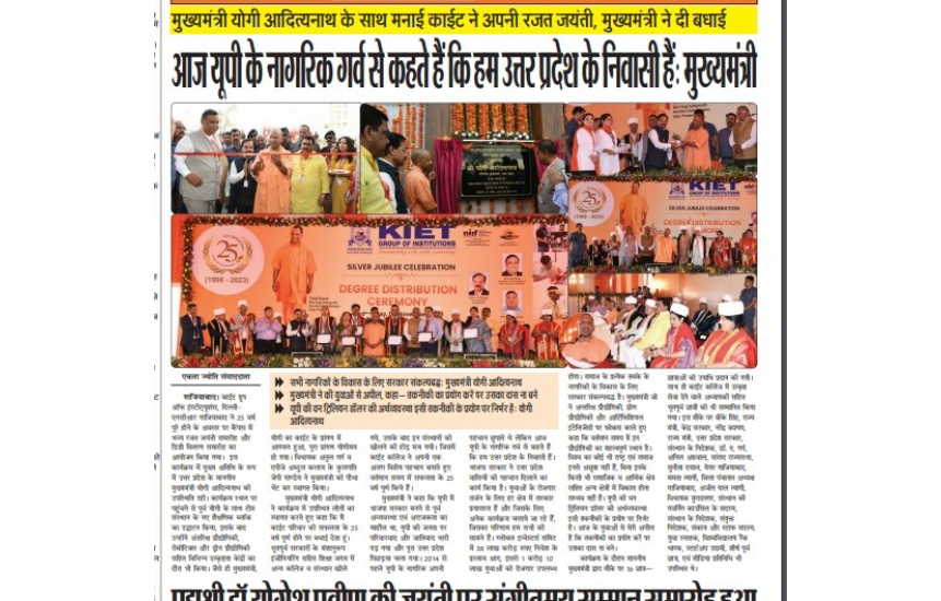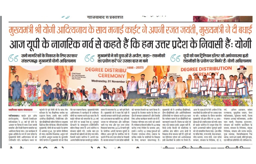 KIET Silver Jubilee Celebration and Degree Distribution Ceremony on November 1st, 2023, in the presence of the Honourable Chief Minister of Uttar Pradesh, Shri Yogi Adityanath Ji: Media Coverage