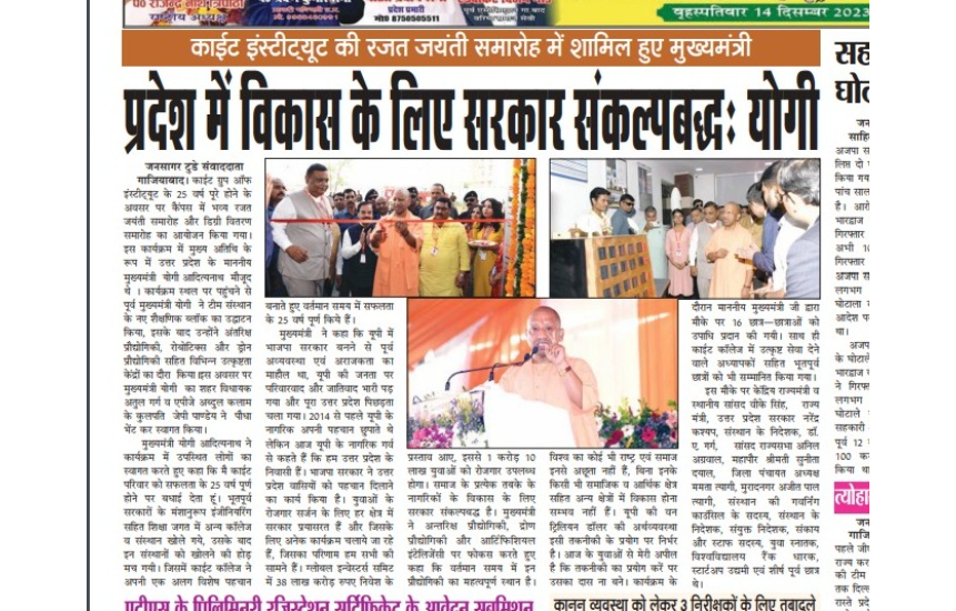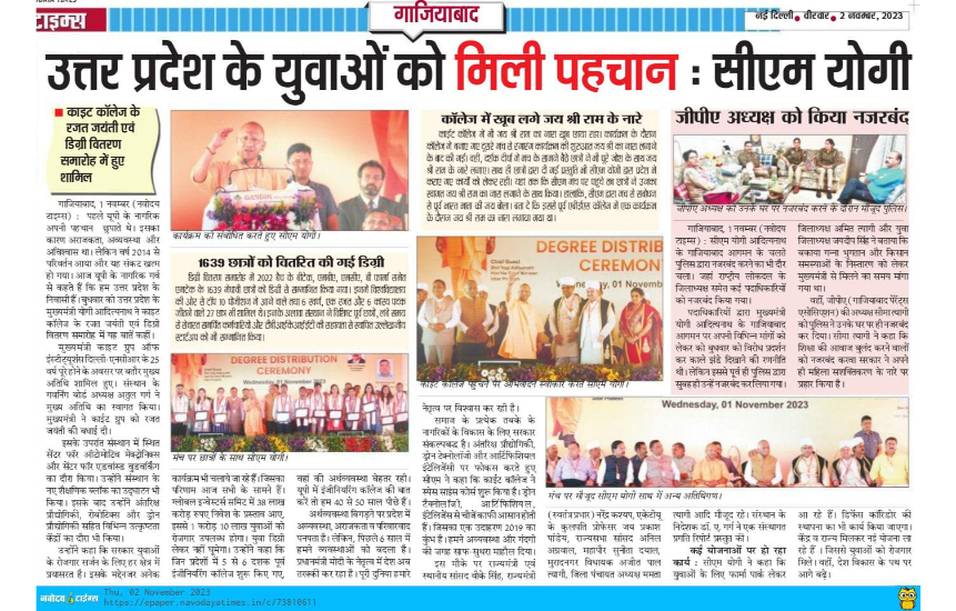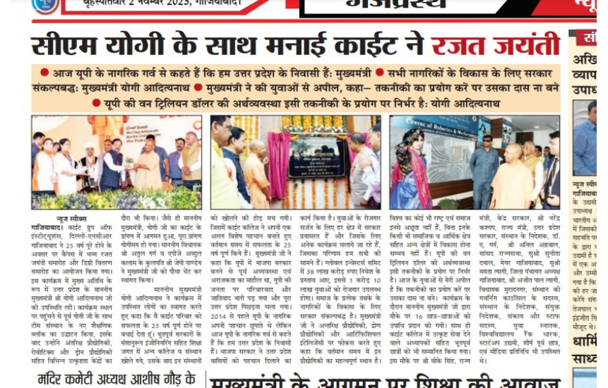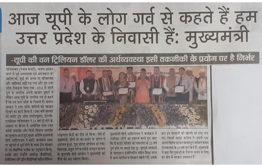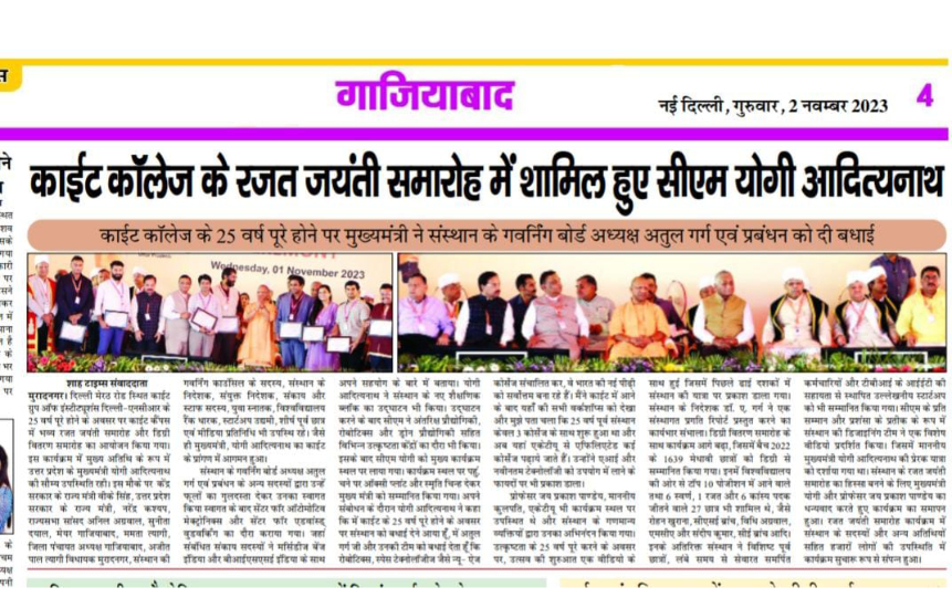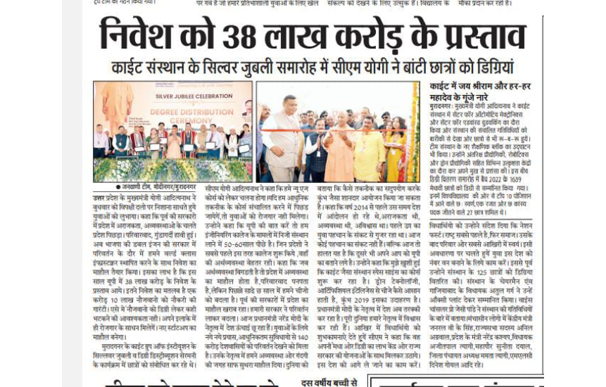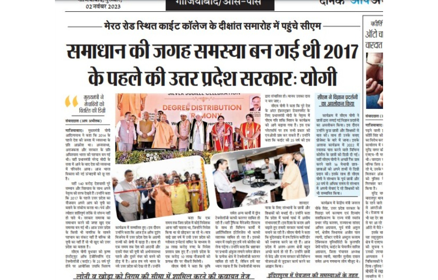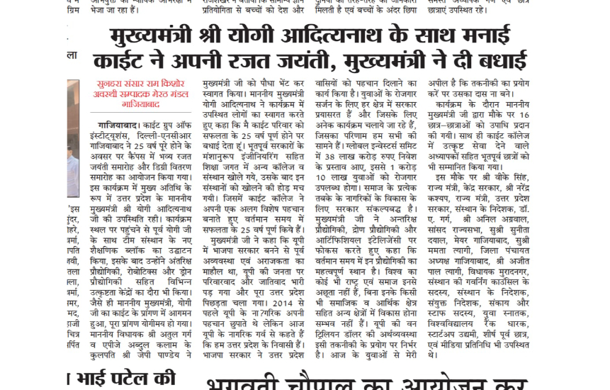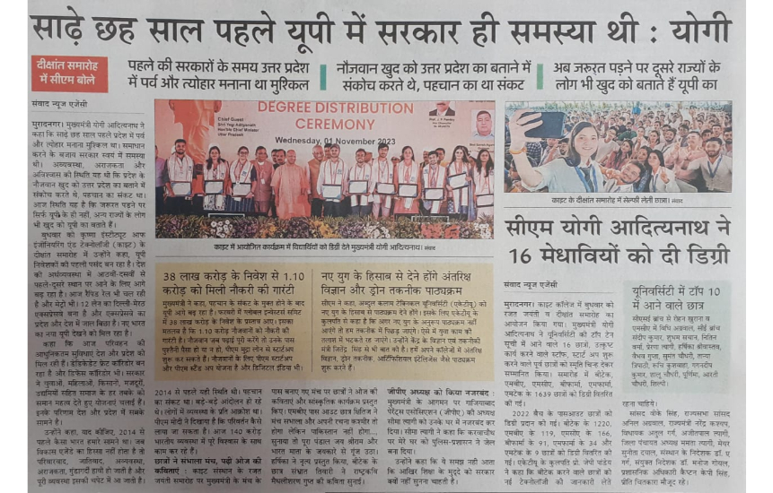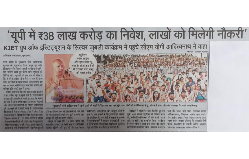 KIET Silver Jubilee Celebration and Degree Distribution Ceremony on November 1st, 2023, in the presence of the Honourable Chief Minister of Uttar Pradesh, Shri Yogi Adityanath Ji: Media Coverage