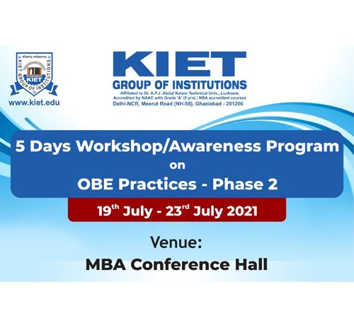 KIET Has Organized 5 Days Workshop/Awareness Program on OBE Practices (Phase-2) On 19 To 23 Jul 2021