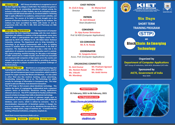 MCA has Organized 06 Days AICTE Sponsored STTP on BlockChain:An Emerging Technology from 01-Feb-2021