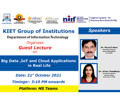 Webinar on "Big Data, IoT and Cloud Applications in Real Life" was organized by IT department on 21 Oct 2021