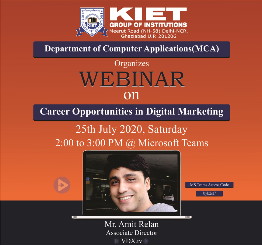 MCA Deptt Has Organized a Webinar on “Career Opportunities in Digital Marketing" on 25 July 2020