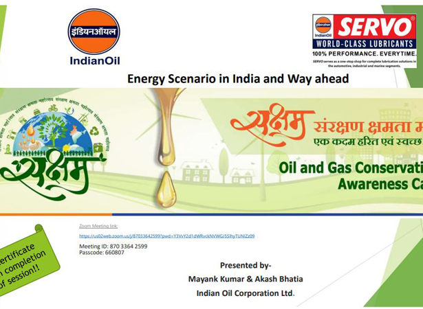 Webinar on Energy Scenario in India & Way ahead with Green & Clean Energy on 12-Feb- 2021 by CE Dept