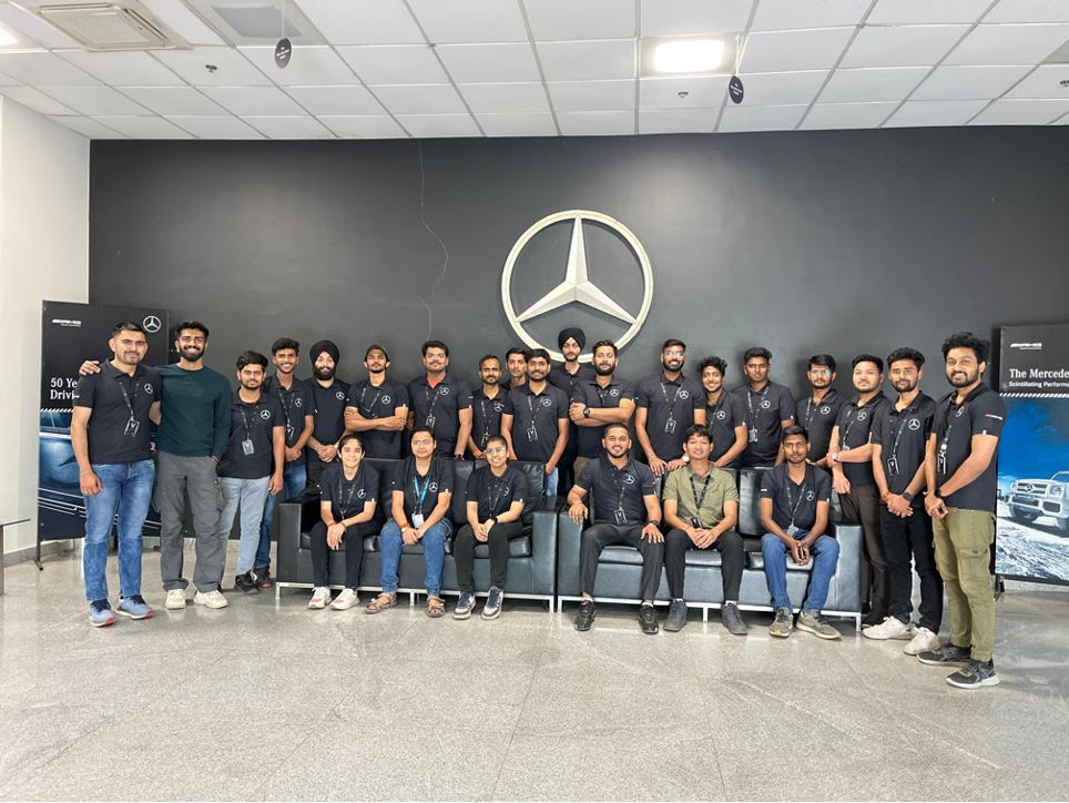 Mercedes-Benz Silver Arrows conducted a placement drive at the Centre for Automotive Mechatronics for ADAM 6th batch students. Out of 25 students, 20 were successfully hired. The Executive Director, Mr. Akesh Pandita, and Head of HR, Mr. Nitin Garg, were present during the recruitment process.