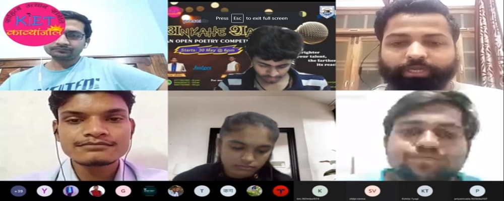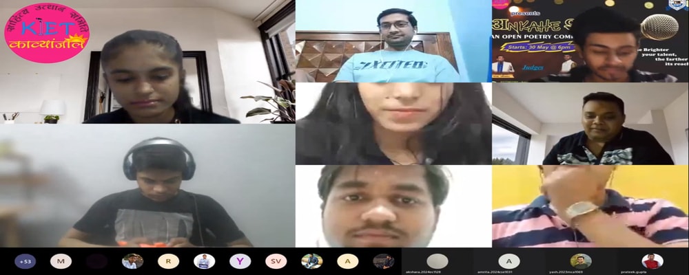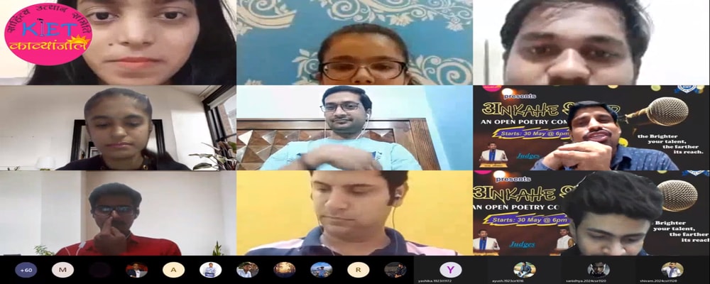 KIET-Kavyanjali organized its first program on 4th May 2014 and now it is one of the leading programs in the Institution. It is one of the best programs of KIET, where most of the people are engaged during the event. Many students of KIET-Kavyanjali have also been selected to perform in programs organized by leading groups of poets outside the Institution. A few of them are Gurmeet Singh, Sanaullah, Sachin Yadav, Adarsh Prakash, Rajendra Kumar, Vrinda Singh, Vandan, Ankur….etc.