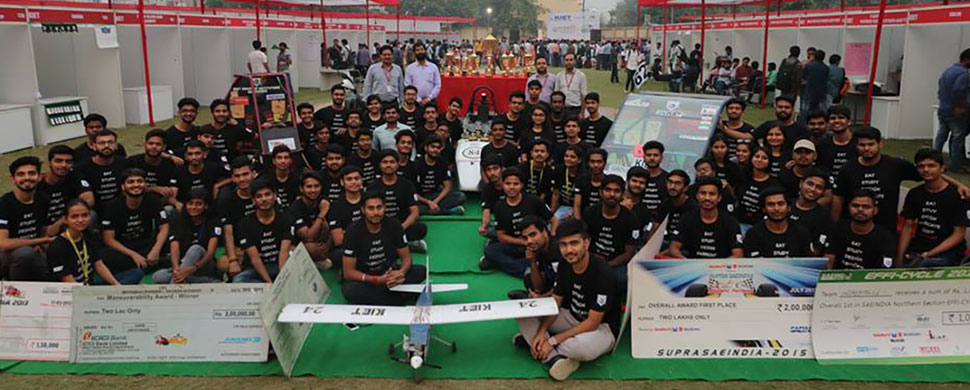 SAEINDIA COLLEGIATE CLUB of KIET was incepted in October, 2008. It provides a platform to students for learning and innovating real engineering skills and encourages them to participate in different CDS events. The club has brought many laurels to the institutions and students have won prizes worth Rs. 18 lacs till date. The club has also been awarded as the Best Collegiate Club in SAE Northern India Section. The club also has a strong alumni base working in leading automobile industries. At present the club has more than 150 active student members.