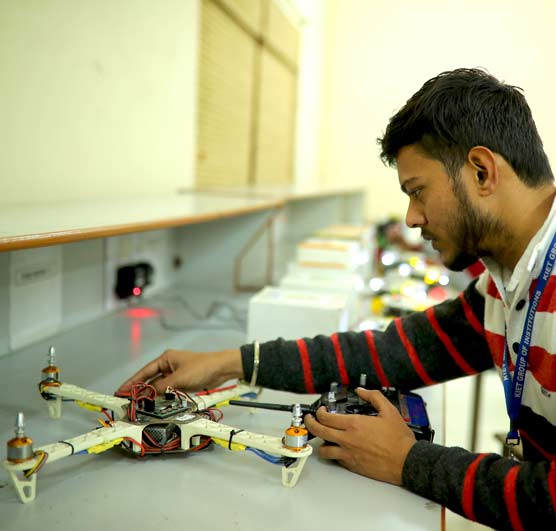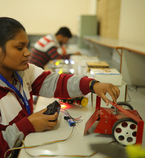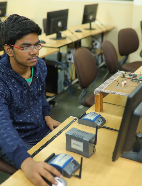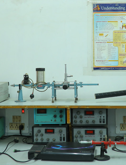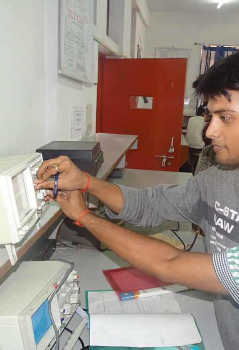 Electronics lab caters to the needs of facilities in the electronics field by training the students to make a valuable contribution. This lab is used by B. Tech students. It helps students to enhance their knowledge about various electronics equipment - both passive as well as active. Electronics is distinct from electrical and electro-mechanical science and technology, which deals with the generation, distribution, switching, storage and conversion of electrical energy to and from other energy forms using wires, motors, generators, batteries, switches, relays, transformers, resistors and other passive components. The objective of this lab is to prepare its students with a good foundation in electronics field so that they become graduate and effective system engineers.