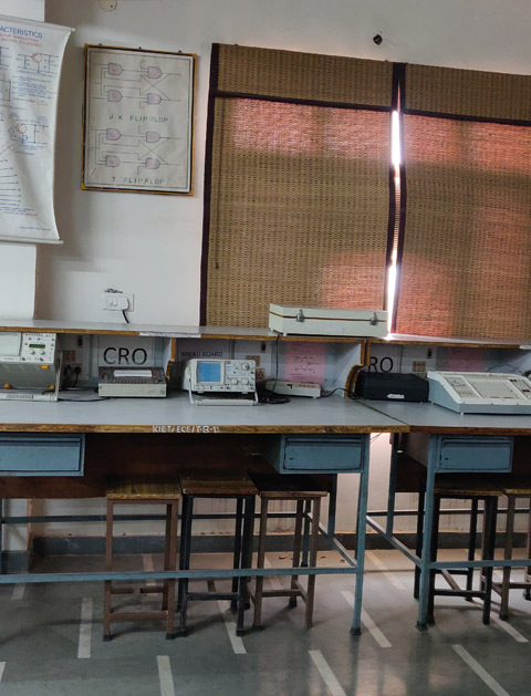 Logic Design Lab/Digital Electronics Lab is catering to the needs of facilities in the electronics field by training the students to make valuable contributions. This lab is used by B. Tech second year students of different branches like Electronics & Communication, Electronics & Instrumentation and Computer Science. Digital Electronics Laboratory is fully equipped with the required instruments such as C.R.O., Multi-meters, signal Generator etc. to conduct experiments with digital ICs for UG students. It helps students to enhance their knowledge about various electronics equipment like shift registers, counters, adders, subtractors and seven segment display devices etc. The objective of this lab is to prepare the students for a good foundation in electronics field so that they become graduates and effective system engineers.