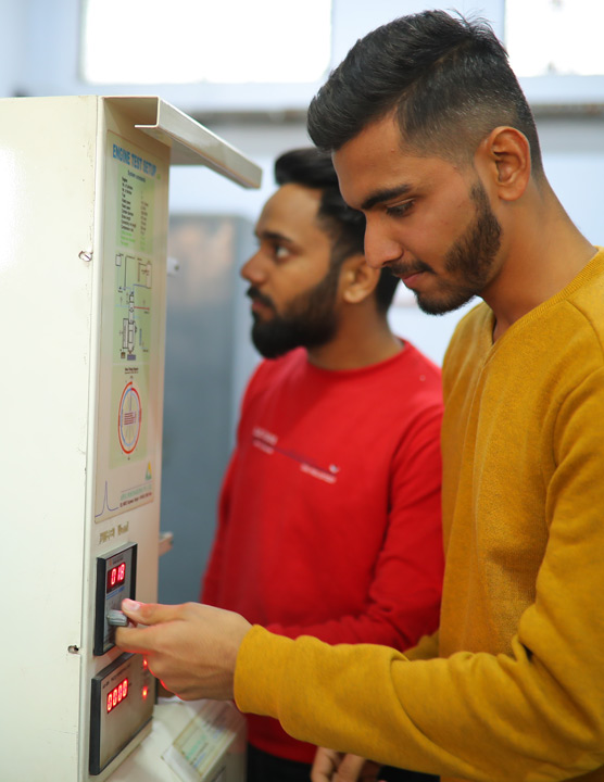 The aim of this lab is to enable the students to study the various automobile parts in detail with the help of different models. The lab consists of performance test for 4-stroke diesel engine and 4-stroke petrol engine, VCR engine and Morse test. This lab also has models of various automobile parts including fuel injection system, ignition system, multi-point fuel injection system, gearbox and other loose automobile parts.